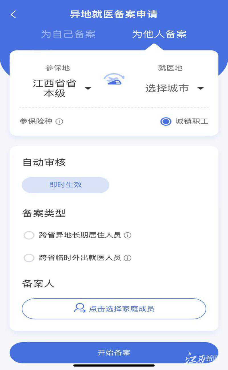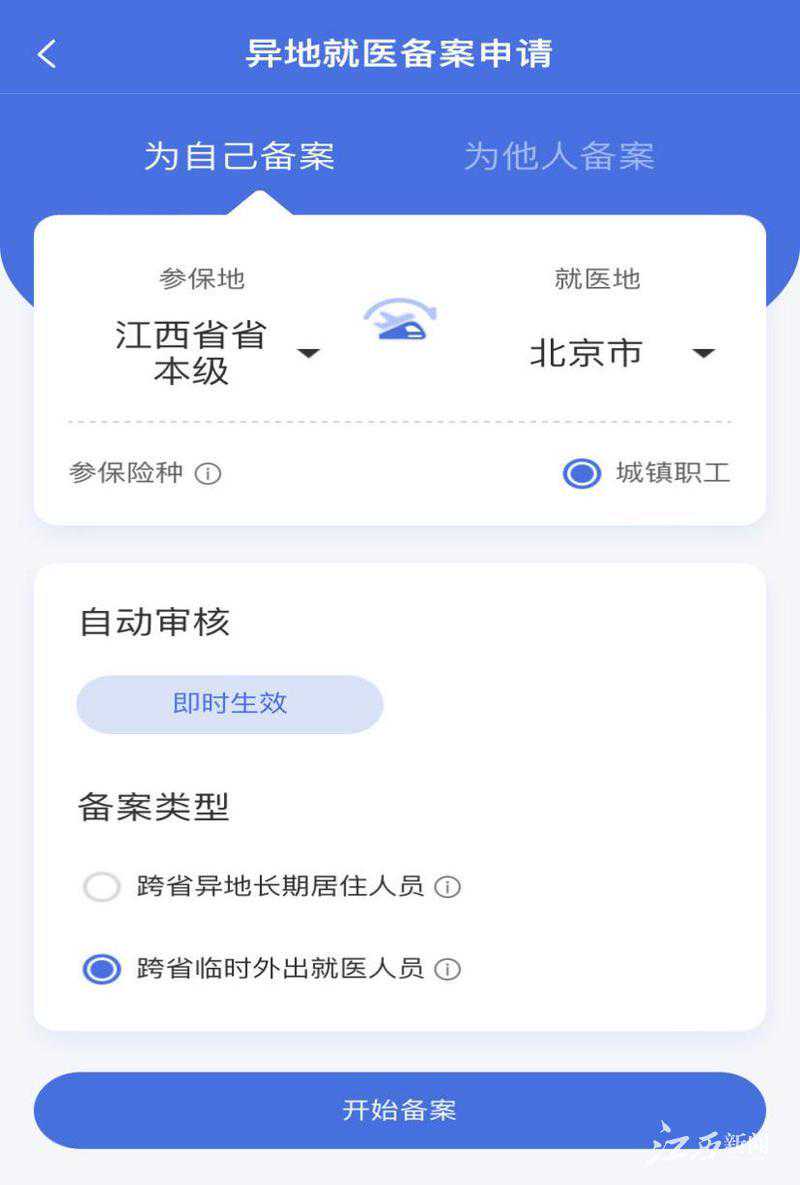 江西新闻客户端讯(全媒体记者洪怀峰)12月21日,记者从省医疗保障局获悉,为深入贯彻落实党的二十大精神,优化参保群众异地就医结算服务体验,我省正式上线异地就医自助备案服务。参保人可通过国家医保服务平台APP、江西智慧医保APP、江西医保公共服务个人网厅、“赣服通”医保专区、“江西医疗保障”微信公众号等渠道进行线上自助备案,备案成功后可享受异地就医直接结算待遇。自助备案的具体操作可参照以下的步骤完成。