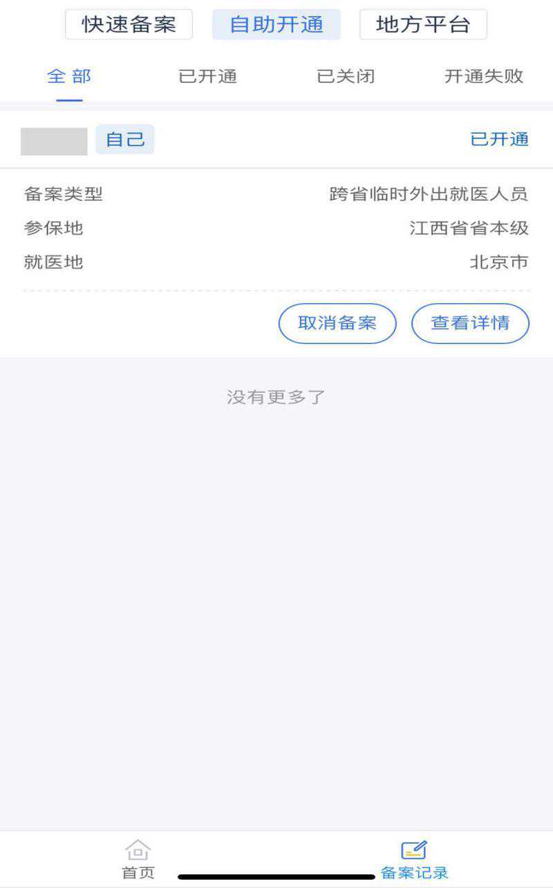提示:异地长期居住人员备案未满6个月的取消需向参保地申请