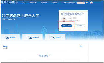 步骤一:登录江西省医保网上服务大厅,进入个人网厅