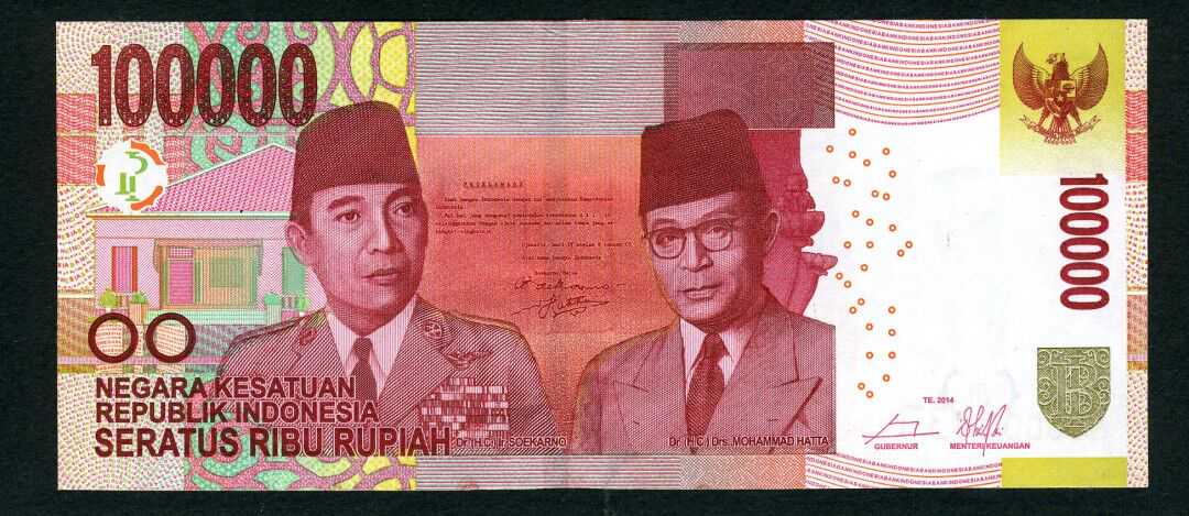 100000卢比印着印尼的两位总统苏加诺和苏哈托(右)。其中苏哈托还是曾经间接屠杀50多万华人的罪魁祸首。