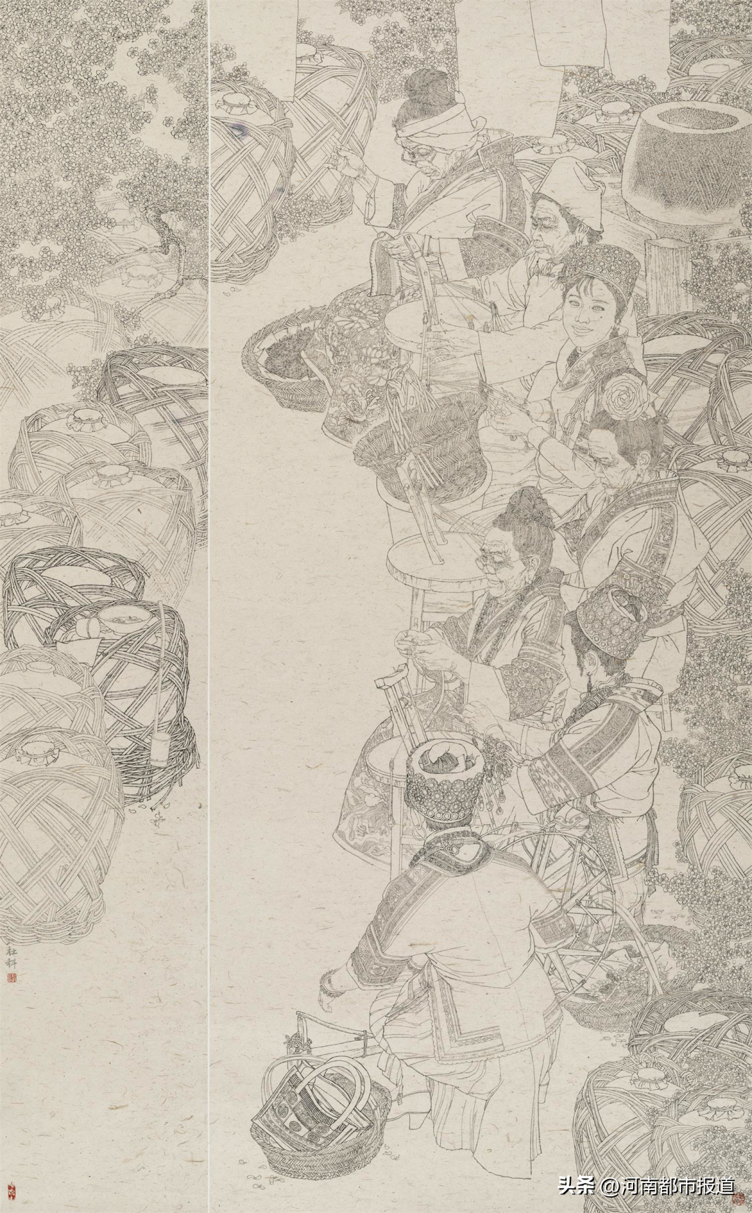 笔黑当随时代,时代在变化,生活环境在变化,人们的精神面貌也发生了变化。画家们以更开阔的视野、更清晰的思路、更精湛的手法,深人生活、扎根人民,用作品反映时代、讴歌人民。“新面貌”“新突破”是大多数人对展览的整体印象。中国工笔画学会会长陈孟昕欣喜地看到,展览中出现了很多新面貌,语言探索上更加多元,引入很多新观念,展览中的工笔画打破了传统的技法局限,有很多突破,在继承传统的国画基础上,比如我们看到有些作品将油画、版画、雕塑、剪纸、戏曲、舞蹈等艺术形式融入其中,以新的方式和新角度来诠释国画,为中国画提供了很多未来发展的可能性。福建省美术家协会副主席林涛观展后告诉记者,明显看到大家对艺术创作态度更加认真、更加投入,尤其工笔画创作更加丰富,出现了很多新面孔。展览打破了福建省美术家协会副主席、福建省美协山水画艺委会主任梁明对展览的一些固有看法,“不再是千人一面,整个展览呈现的面貌非常新。无论知名画家还是青年画家,每个作者都有自己的思想,在笔墨语言也在尝试新的探索和追求,大家在继承传统的基础上,结合了很多当代的构成意识”。