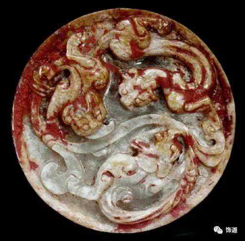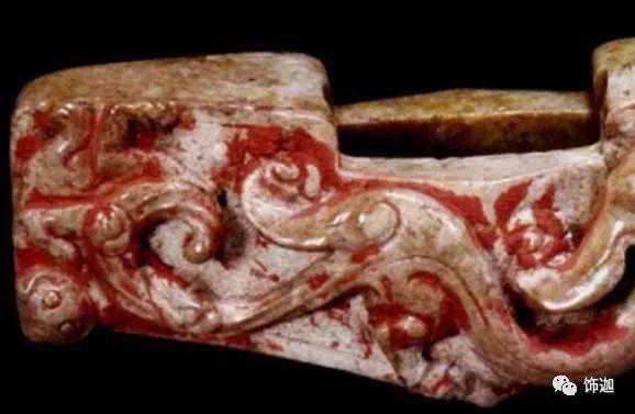 在出土的古玉中人们发现有些红色的沁色,人们将其原因分为四种,一是受朱砂侵染,二是血水浸染,三是纺织品的颜料染色,四是铁沁。现在分别来看,先看朱砂沁。