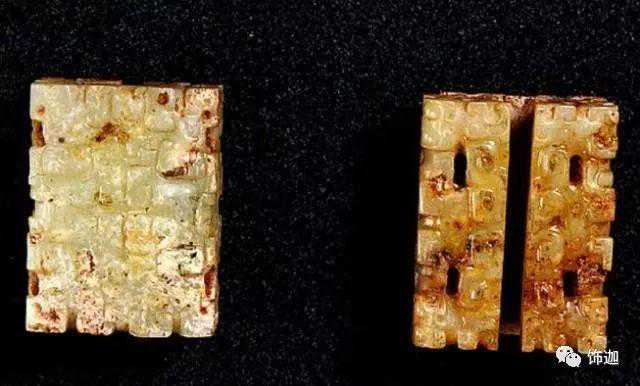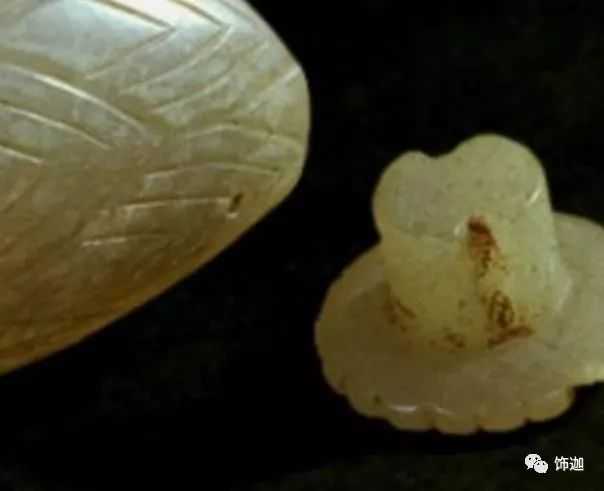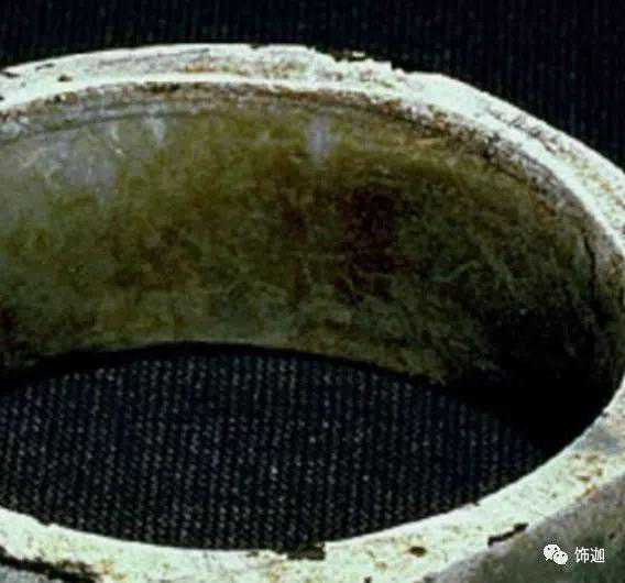 受沁的程度有重有轻,重的地方还带有棕红或黑红的块状物。沁成这种程度需要千年以上的时间。