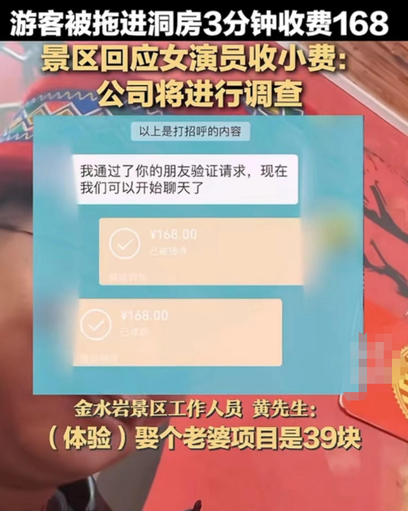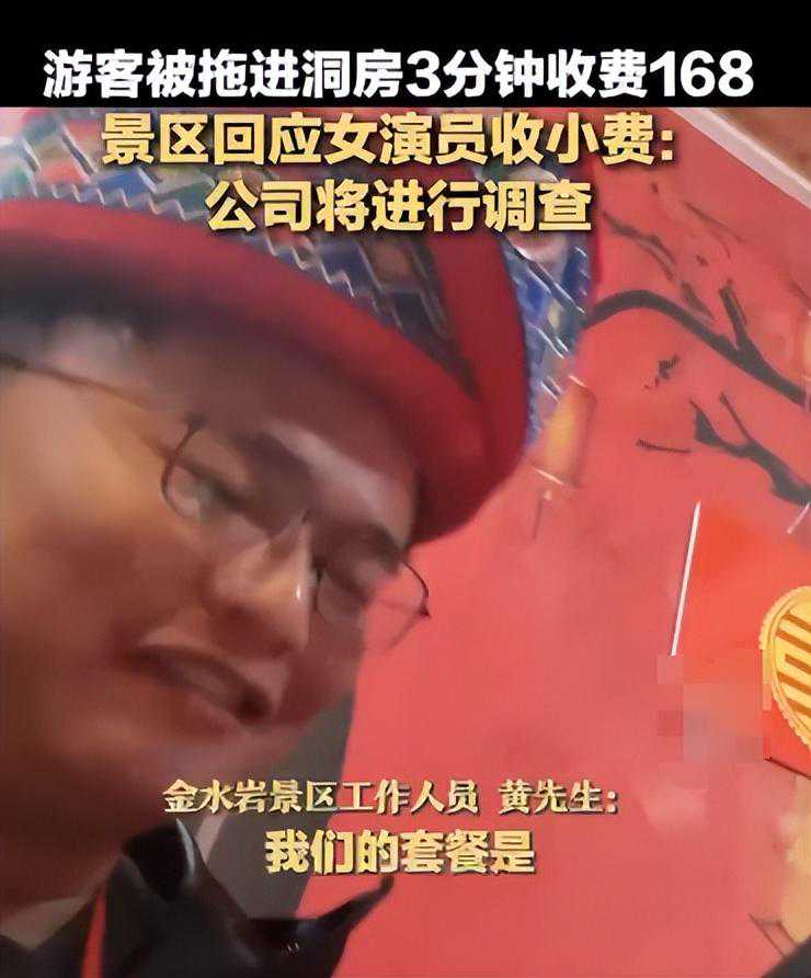 一男子在广西景区游玩时被拖进洞房,接了一杯水的时间就被收费了168元。