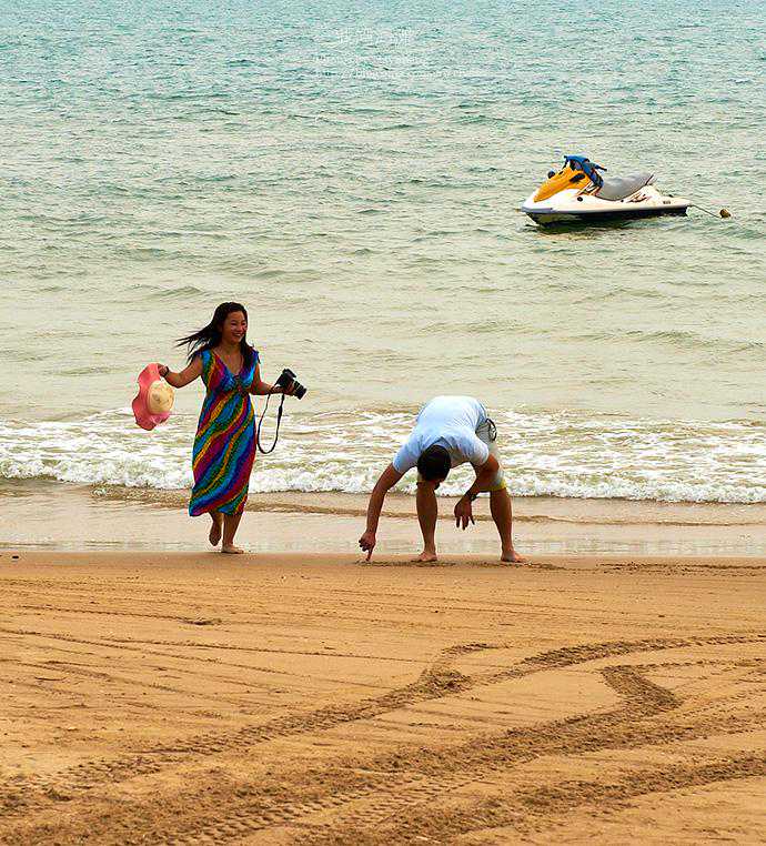 到了三亚以后,男子稍作修整,便带着自己的相机跑到了海边,很兴奋的准备拍下浩瀚的大海。