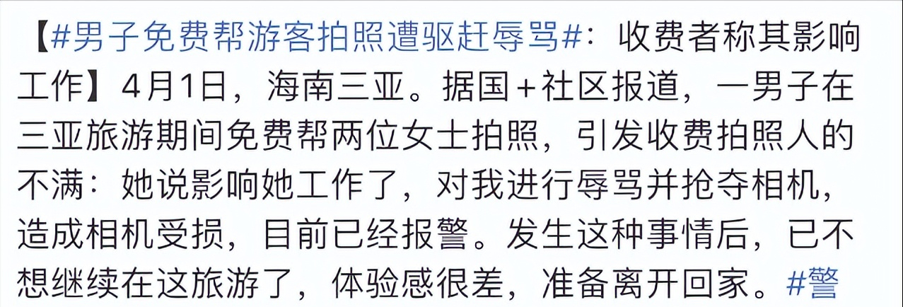 近期出去旅游碰到的奇葩事可不只是这一件,还有一个游客去三亚旅游,就连自己拍照片的相机都被弄坏了。