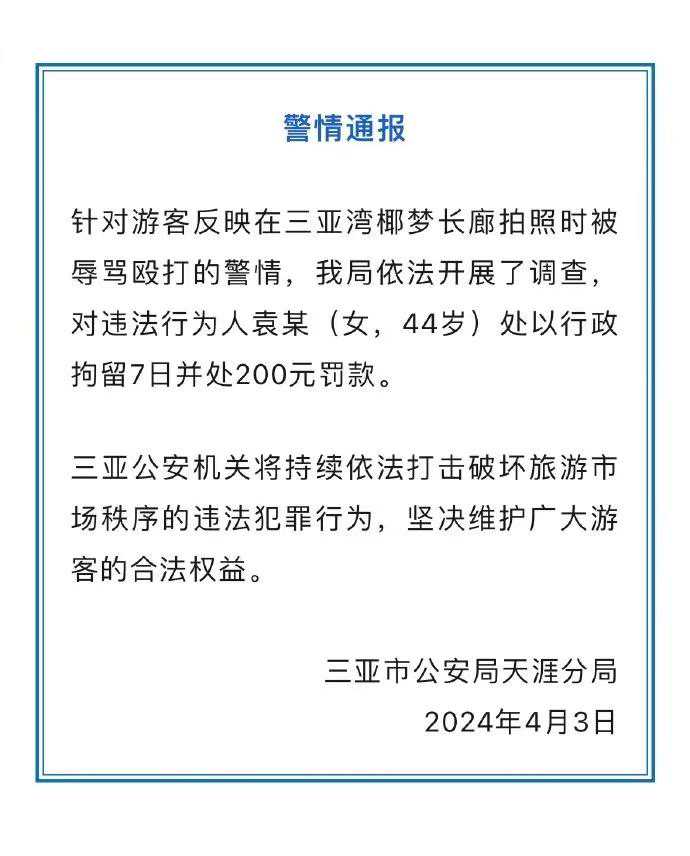 “已经对涉事的女子,处以行政拘留7日,并且罚款了200元。”