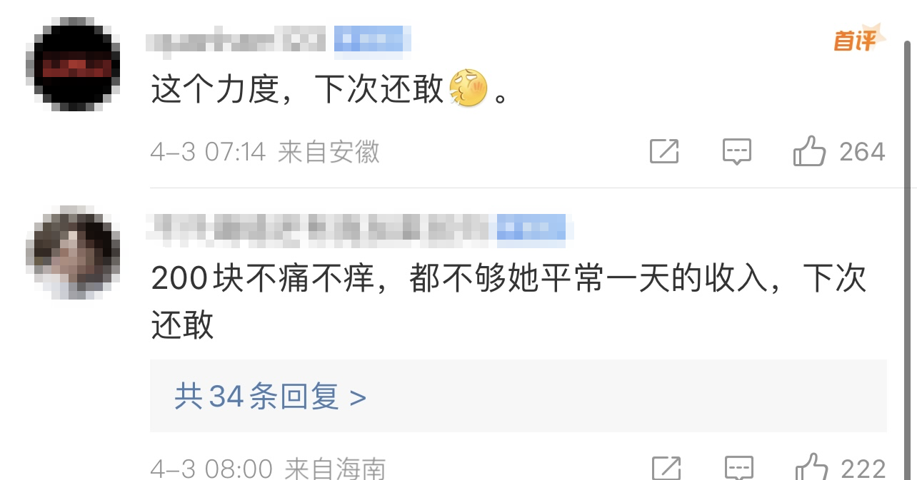 “罚款的200块钱,对于这个大妈来说着实是有些少了吧。”
