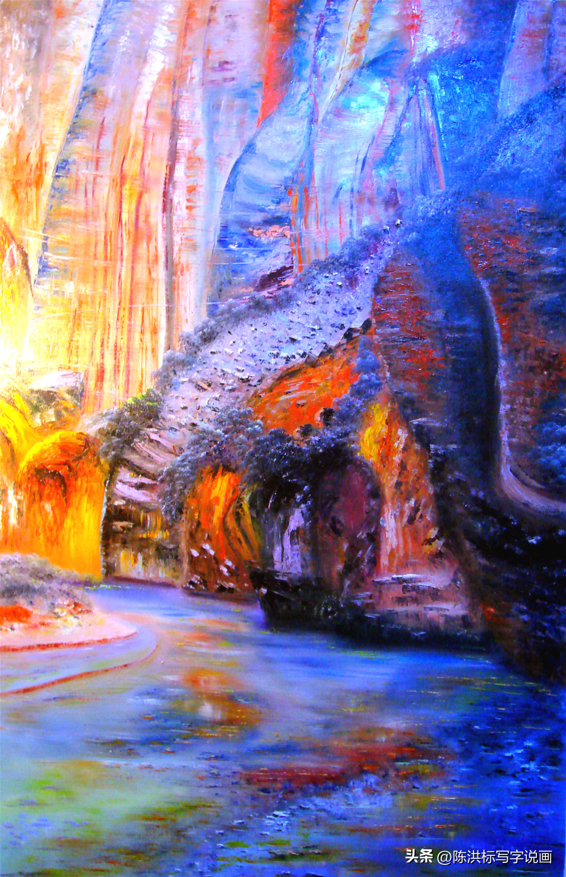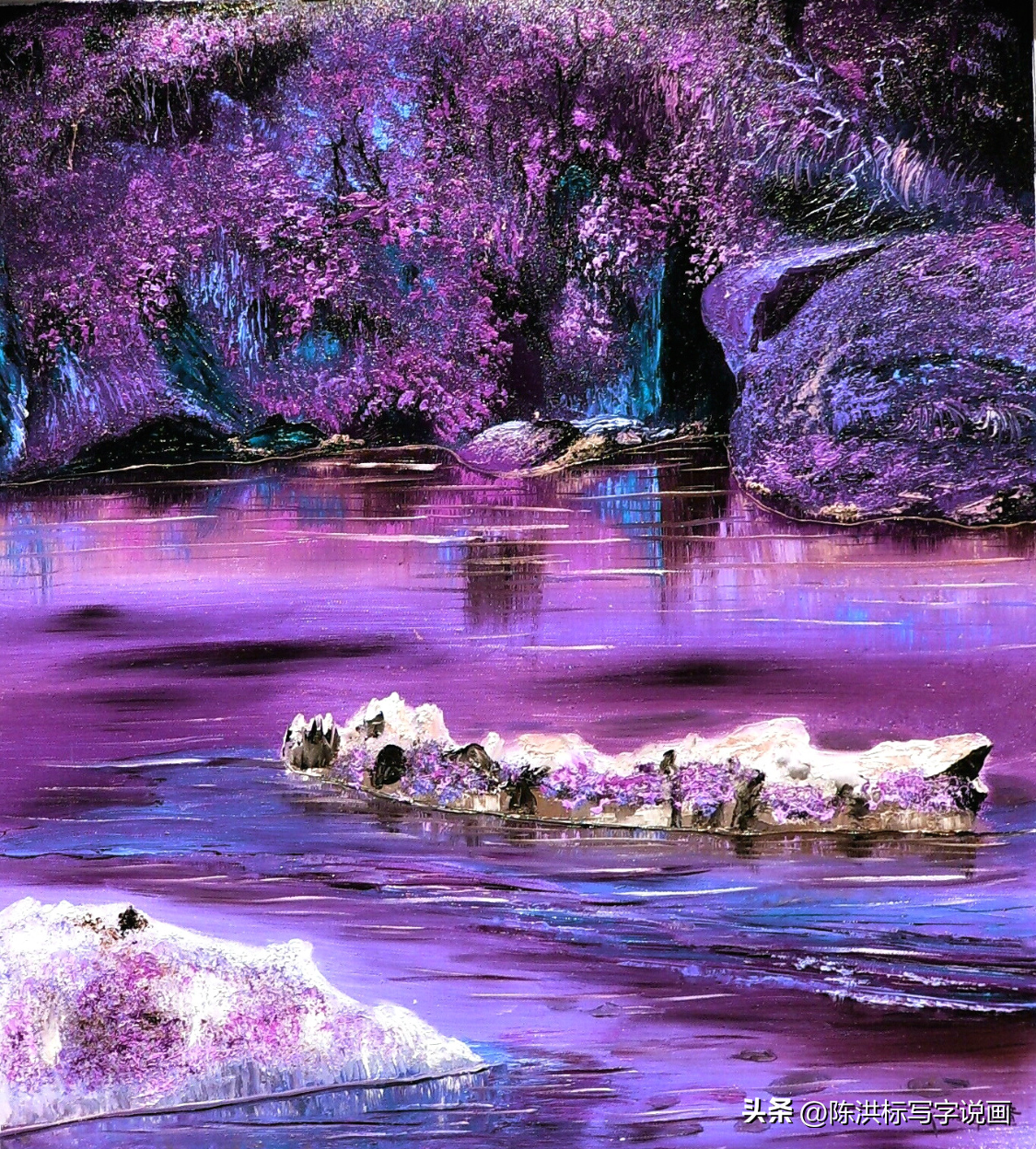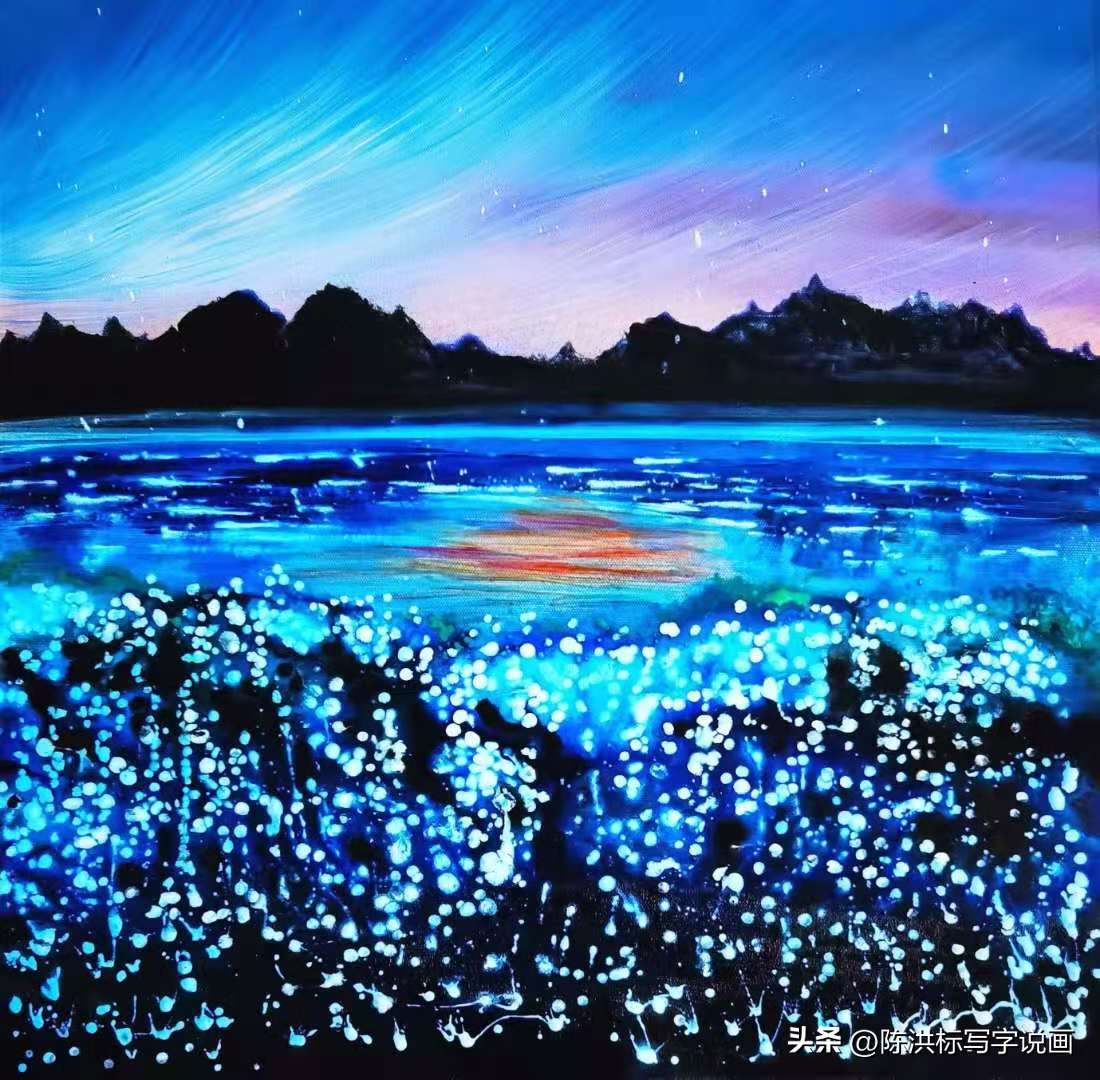 ▲黄建南油画作品《梦境玉湖》。