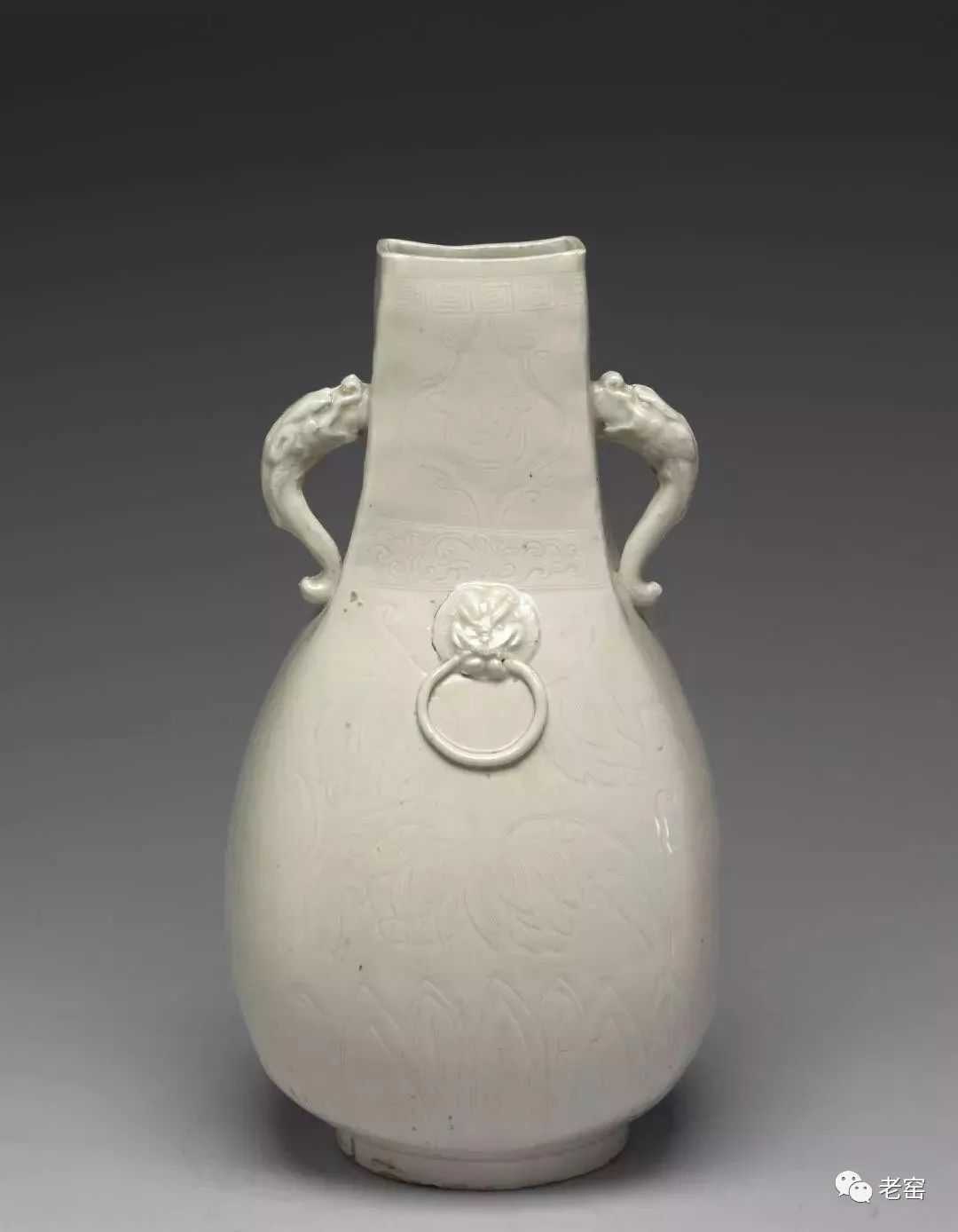 北宋定窑白瓷铺首龙耳方壶