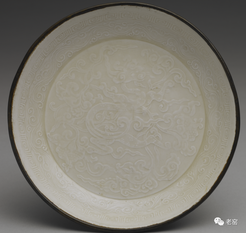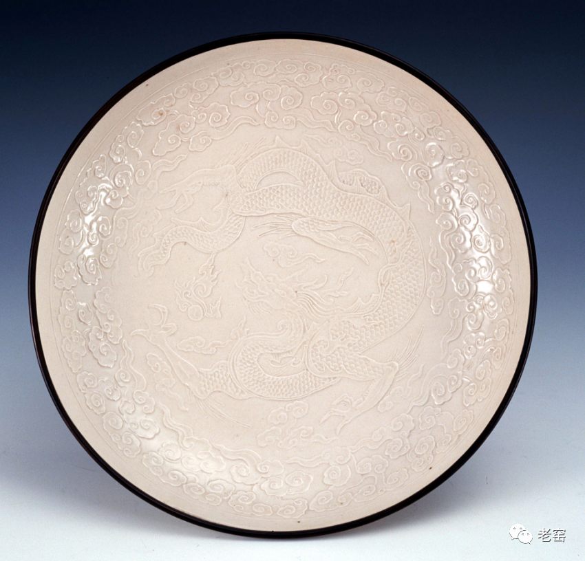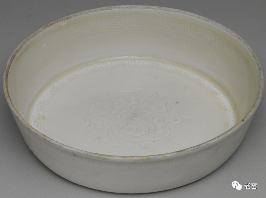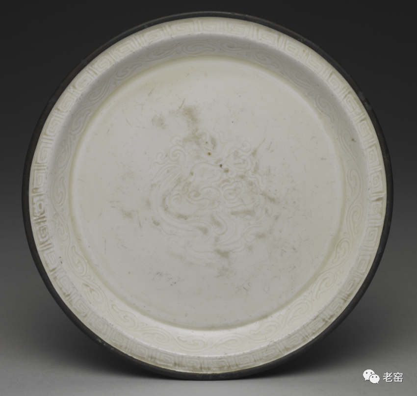 金定窑莲荷纹花口盘(整体)美国弗利尔美术馆藏金定窑莲荷纹花口盘(底部)美国弗利尔美术馆藏金定窑白釉刻花螭龙纹盘