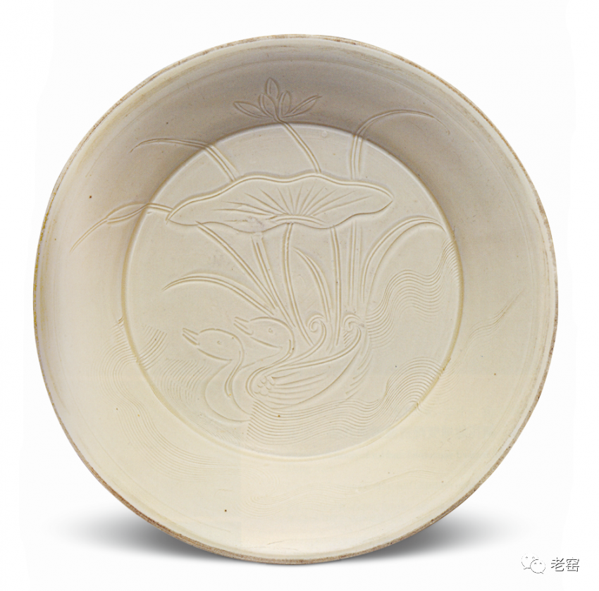 金定窑白釉印花莲池鸳鸯盘