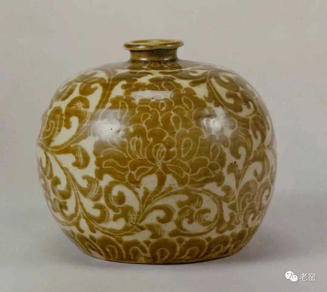 金定窑白釉褐花牡丹卷草纹瓶