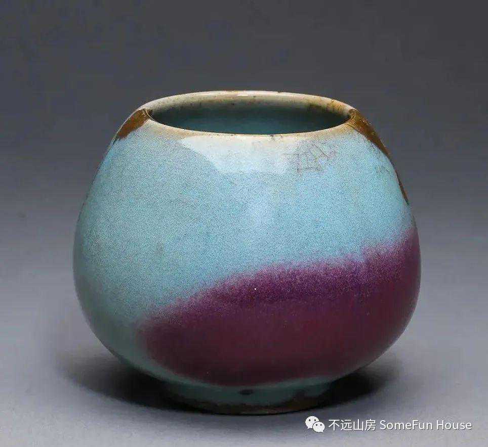 大都会艺术博物馆藏金代钧窑天青釉玫瑰红窑变鸡心罐