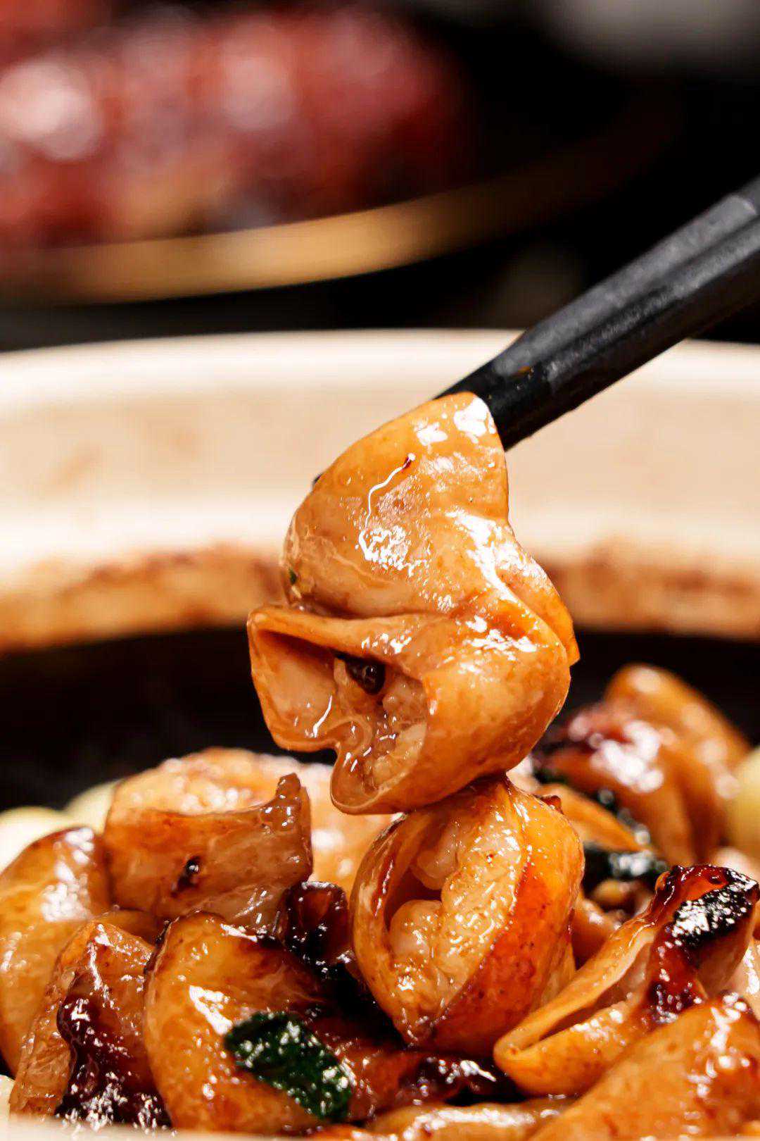 让人难以忘怀的还有「啫啫猪大肠」,只用土猪大肠头,创意地加入石碣甘蔗,搭配秘制配料一起猛火啫制,不仅中和多余的咸感,风味也更上一层楼,上桌还在滋啦作响,入口Q弹韧糯,还带着汁水的馈赠,越嚼越香,此刻要想停下筷子可是件难事咯~