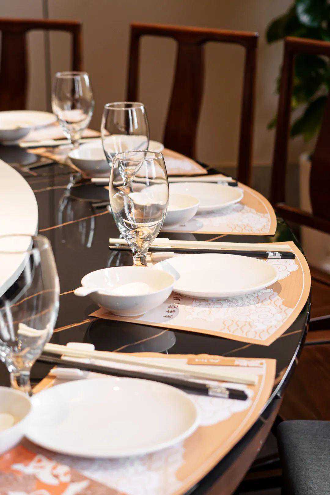 艺术花艺与摆件的设置,造就一步一景的设计巧思,精致的氛围游走在空间的每一个角落~令人印象深刻的,还有以东莞不同镇区或景点命名的包间和厅位,每一处都能唤起东莞人的回忆,很巧妙!