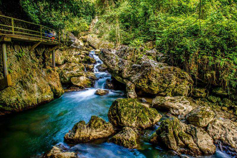 广西作为我国这几年的热门旅行目的地,这里可以去游玩的地方很多,而今天小编要安利给小伙们的是一个鲜为人知的景点,广西最原生态的大峡谷,就位于广西百色,古龙山大峡谷是一个规模庞大的峡谷群落,这里也被认为是世界上原生态峡谷的代表之一,整个大峡谷幽深奇绝,集秀美和险峻于一身。纵览古龙大峡谷,只见一川碧水,绵延而去;水深之处,幽深静谧;沙石浅滩,则细流如烟;峭壁悬崖,林立两岸;奇花异草,随处可见;飞瀑横空,一泻而下,而乘坐橡皮船漂流其中,更有溶洞钟乳可看,神秘莫测。如此独特的景观组合,使得古龙大峡谷素有“一水贯三峡穿三山连三洞”的美称。