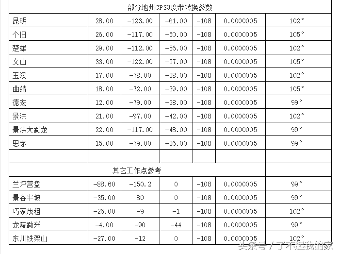 以下为包头地区坐标系转换参数