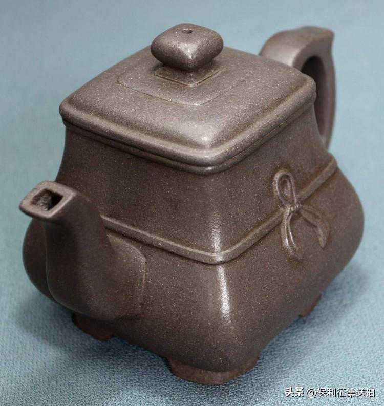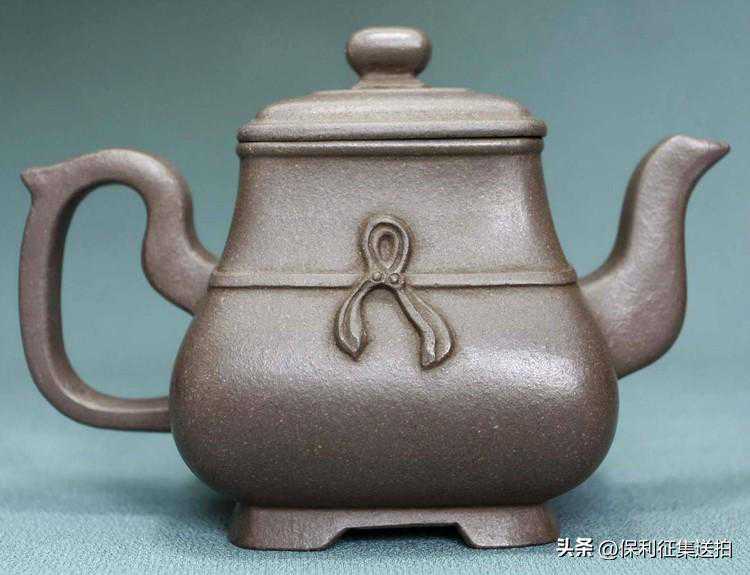 矮蛋包壶曾为邵大亨所创,是邵友廷之名品。容量较大,软提,适于家中与茶坊间携带,为清末茶坊的流行款式。壶身圆浑丰满,线条柔和,和颈饰云肩线,挺而精细,口盖母子线配合,稳如天压地。盖内钤“友廷”二字楷书椭圆章。罐钵之盖式,用手抓开启冲泡茶叶,边饰双线,中有一小气孔。壶嘴三弯,伸展自如,圆腴光润,品茗端拿摩挲,手感触觉舒适。泥色为紫红色,久用光润如古玉,亚光闪亮。底为凹形,颇有特点,在任何场合放置平稳、结实。钮为半圆形,丰腴流畅,中置一孔,铜把作软提,便利提携。矮蛋包壶为打身筒手工成型,口部用刹凹法,内部光润无泥迹,技艺难度较高。