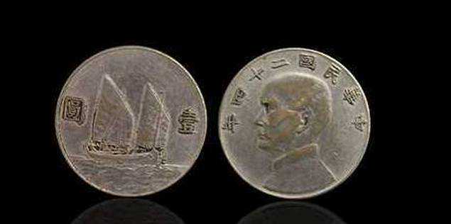 中华民国二十四年孙中山像壹圆银币为银币收藏中的珍稀品种之一。该银币发行于民国二十四年,银币正面图案为孙中山文装侧面像,人像上方为“中华民国二十四年”字样,背面图案为一艘二桅帆船行于海上。