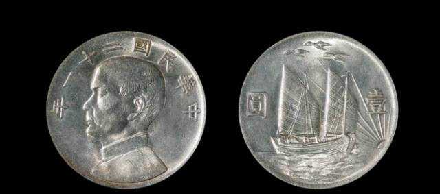 中华民国二十一年孙中山像帆船壹圆银币背面阴--成交价:RMB1,844,800---成交日期:2010-11-15