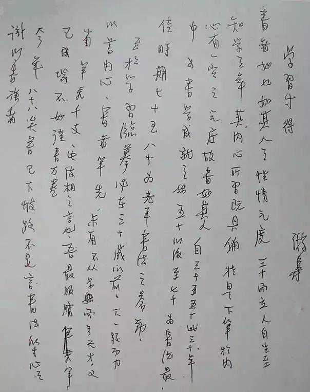 游寿《学习寸得》手稿,写于1993年。
