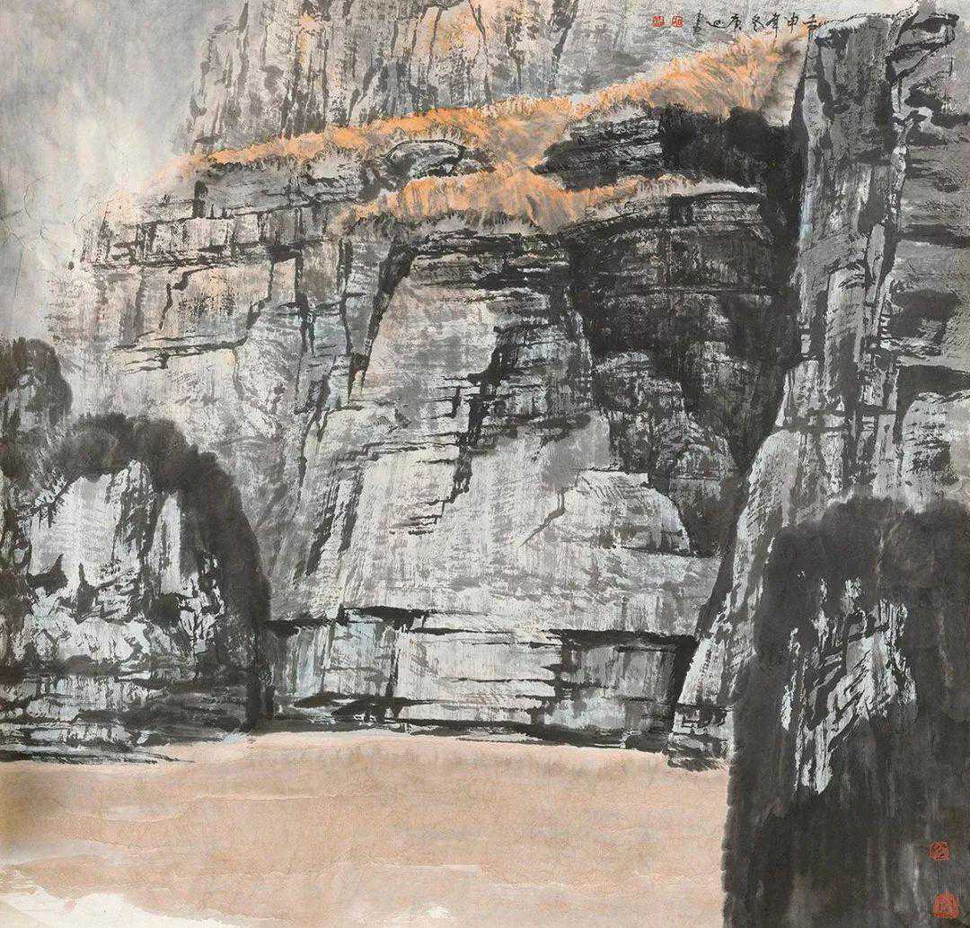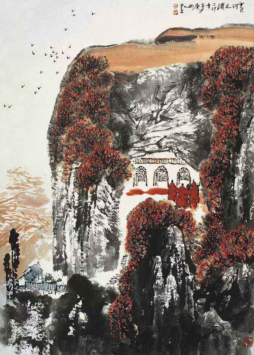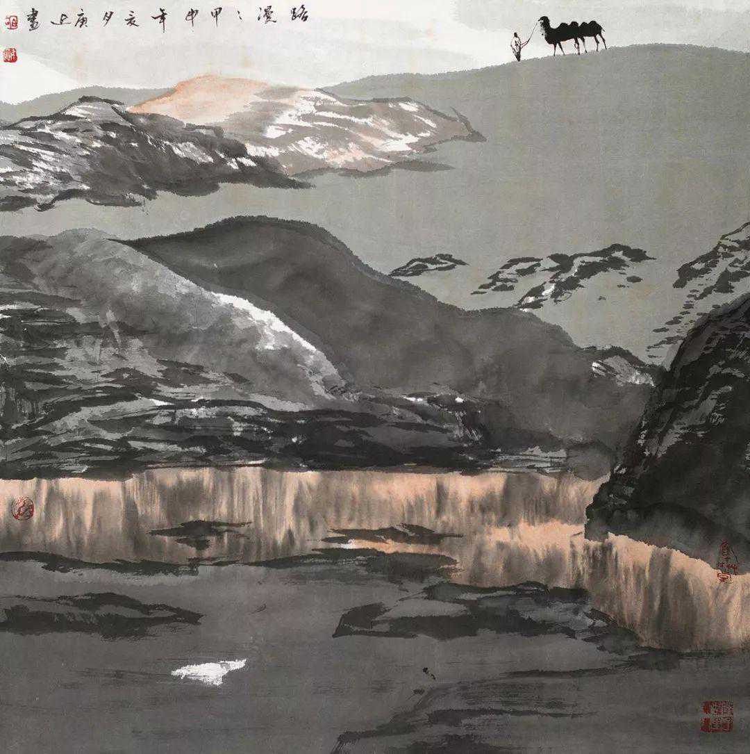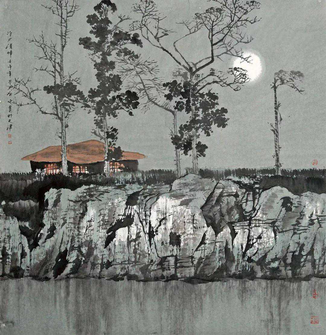 他有一个情结,有一个从未动摇的信念,就是“山水画要为民族造像!”这成为他生命活动的主要指归。他以特有的坚韧,义无返顾地沉潜奋斗几十年。创作出一件件情调古雅凝重的杰作,表现出他对中华民族终生不渝的爱。