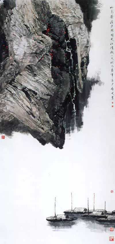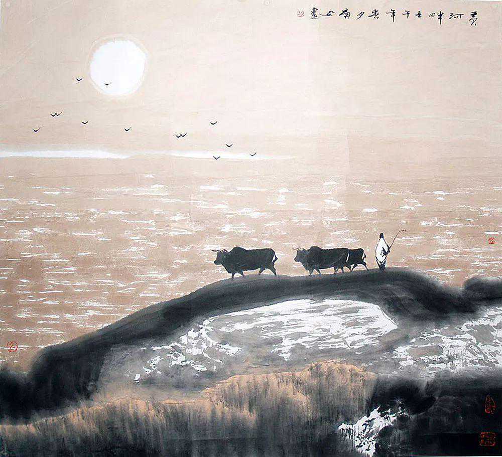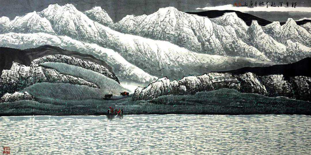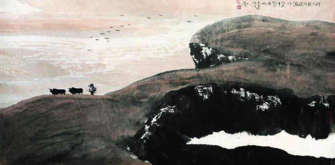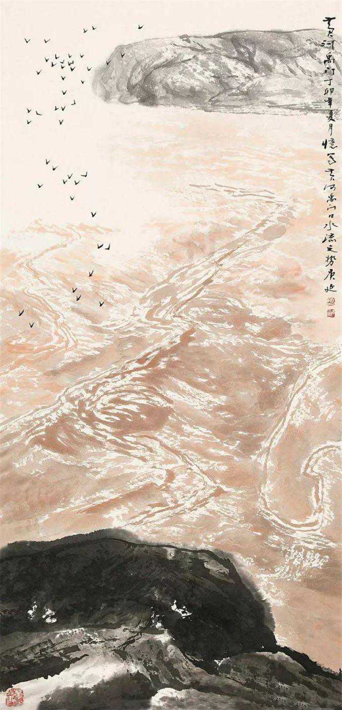 他有一个情结,有一个从未动摇的信念,就是“山水画要为民族造像!”这成为他生命活动的主要指归。他以特有的坚韧,义无返顾地沉潜奋斗几十年。创作出一件件情调古雅凝重的杰作,表现出他对中华民族终生不渝的爱。