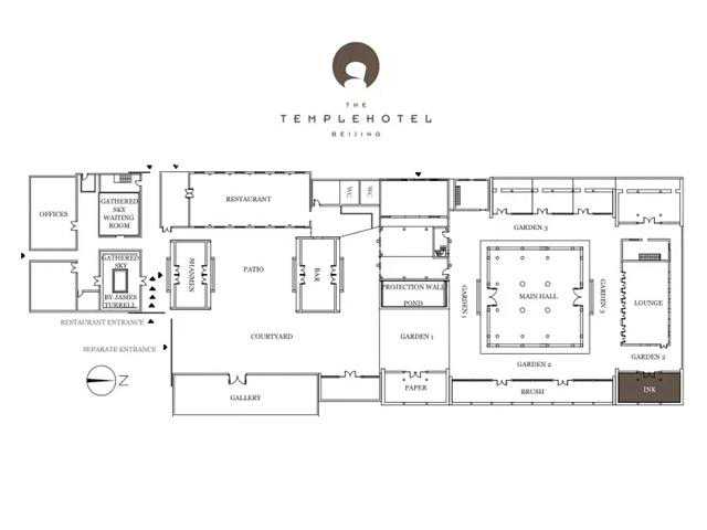 智珠寺坐北朝南,其前四层为Temple东景缘所在地。开阔的庭院内拥有花园、影壁、水池等设施,十分适合露天茶话会、婚礼、私人派对等活动。尤其是投影墙,是夜间烘托氛围的“神器”。
