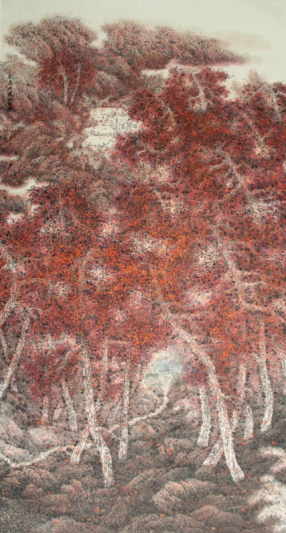 《暖秋》96X177cm参展"墨韵岭南"全国中国画作品展