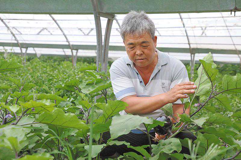2、蒲城县三合乡巷刘村村民检查茄子的长势