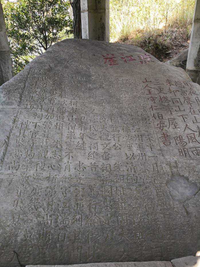其实这里提到的“照江崖”与王守仁诗的题刻都刻在照江亭内平地突起的一处巨岩之上,但两者所占面和人仅占石崖正面的五分之一左右,石崖左侧主体部分是嘉定四年(1211)十一月赵崇宪《祭先祖考妣文》,全文如下: