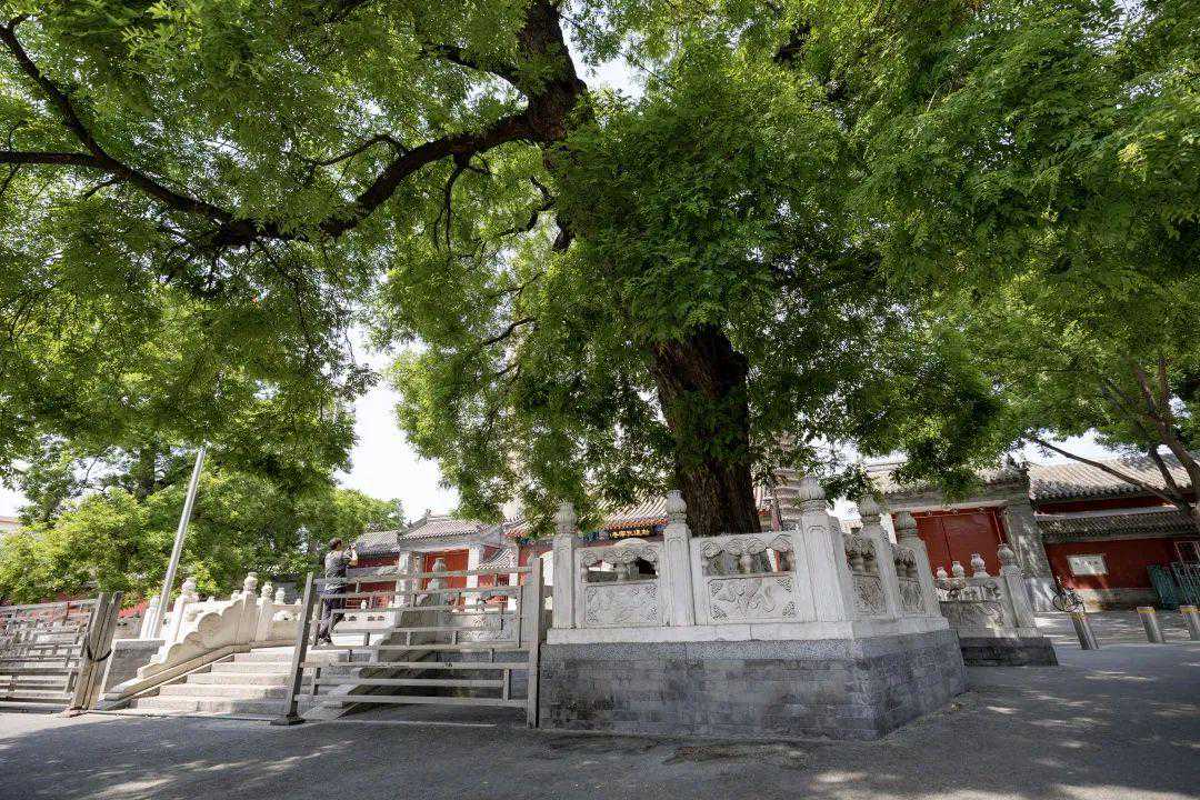 下广安门桥,沿着天宁寺前街往里走,天宁寺塔高高的密檐越过天宁寺的山门映入眼帘。寺前的一棵国槐已有上百年的寿数,蓊郁成幽,琳琅如玉,投下的树荫能遮住山门前大半个空地,在暑日送出一片清凉。天宁寺占地面积并不大,跨过书有“敕建天宁寺”的山门,绕过供有阿弥陀佛的接引殿,便能见到三两棵绿树后巍峨屹立的天宁寺塔。