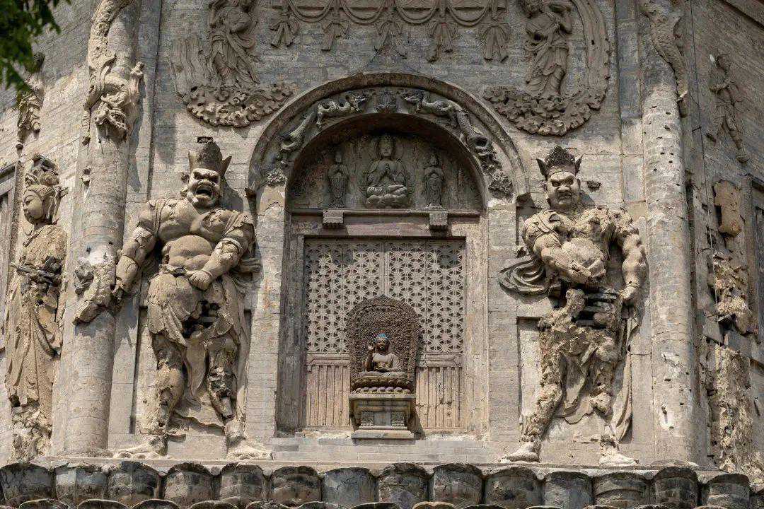 叹为观止。这是天宁寺塔留给很多人的第一印象。八角十三檐的斗拱密檐式塔,建在一个方形平台上,下部是高大的须弥座,座下束腰处刻有壶门花饰,转角处有浮雕像。须弥座上则是斗拱勾栏的平座和三层仰莲瓣,用以承接塔身。塔身四周设门,门旁雕有菩萨、云龙和金刚力士等形象,刻工精湛,造型生动,尤其是那砖塔正面的金刚力士,肌肉隆起,怒目圆睁,显得十分威武,给人印象极为深刻。由于塔的内部为实心,所以无梯级可登。不过,在塔前方的告示牌上设有游人可顺时针绕塔祈福的提示。