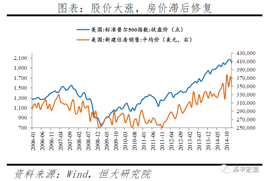 2)2007年9月至2015年末:通胀平稳,股价大涨,房市滞后修复。