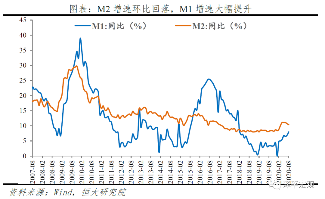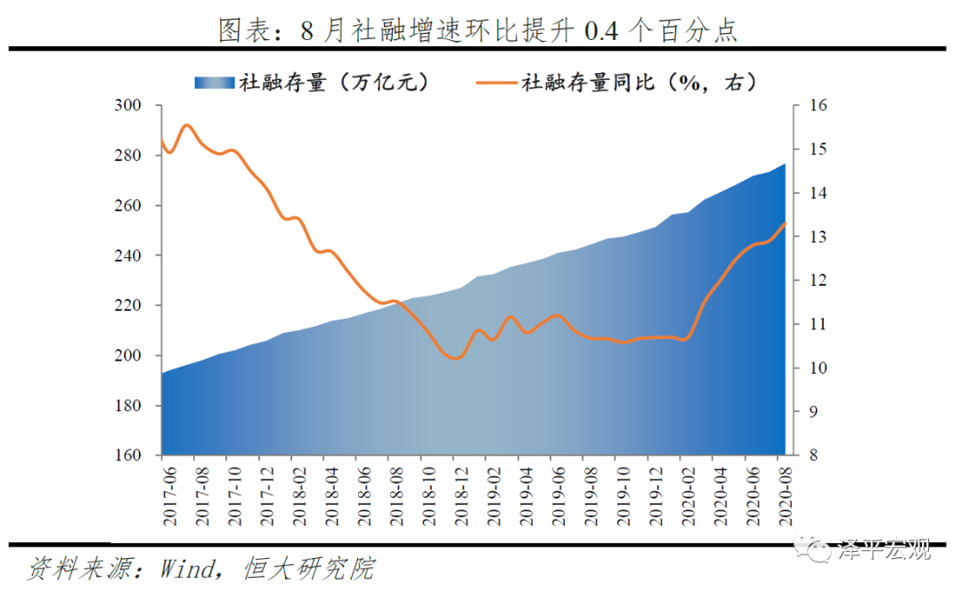 为应对疫情冲击,年初货币政策总量超宽松,5月以来经济稳步恢复后转为结构性宽松。M2和社会融资规模存量同比增速重回两位数,分别由2019年末的8.7%和10.7%回升至2020年8月的10.4%和13.3%。