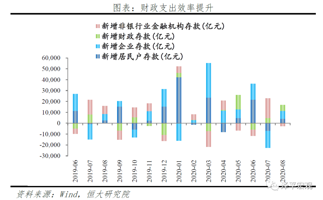 8月M2同比增速10.4%,环比回落0.3个百分点。8月银行信贷投放、债券购买力度边际收敛,叠加政府债放量发行,财政存款同比明显多增,对M2增速构成拖累。从结构来看,1)企业存款增加7491亿元,同比多增1699亿元,财政支出节奏加快、财政存款向企业存款转化。2)居民存款增加3973亿元,同比多增1259亿元。2)财政存款增加5339亿元,同比多增5244亿元,虽然8月并非缴税大月,但8月政府债放量发行募集1.38万亿元,带动财政存款多增。同时,由于今年财政资金划转效率高、直达基层,财政存款规模明显低于政府债融资规模。3)非银金融机构存款减少2612亿元,同比大幅多减9910亿元,8月股市震荡,部分参与者或兑现前期盈利离场。