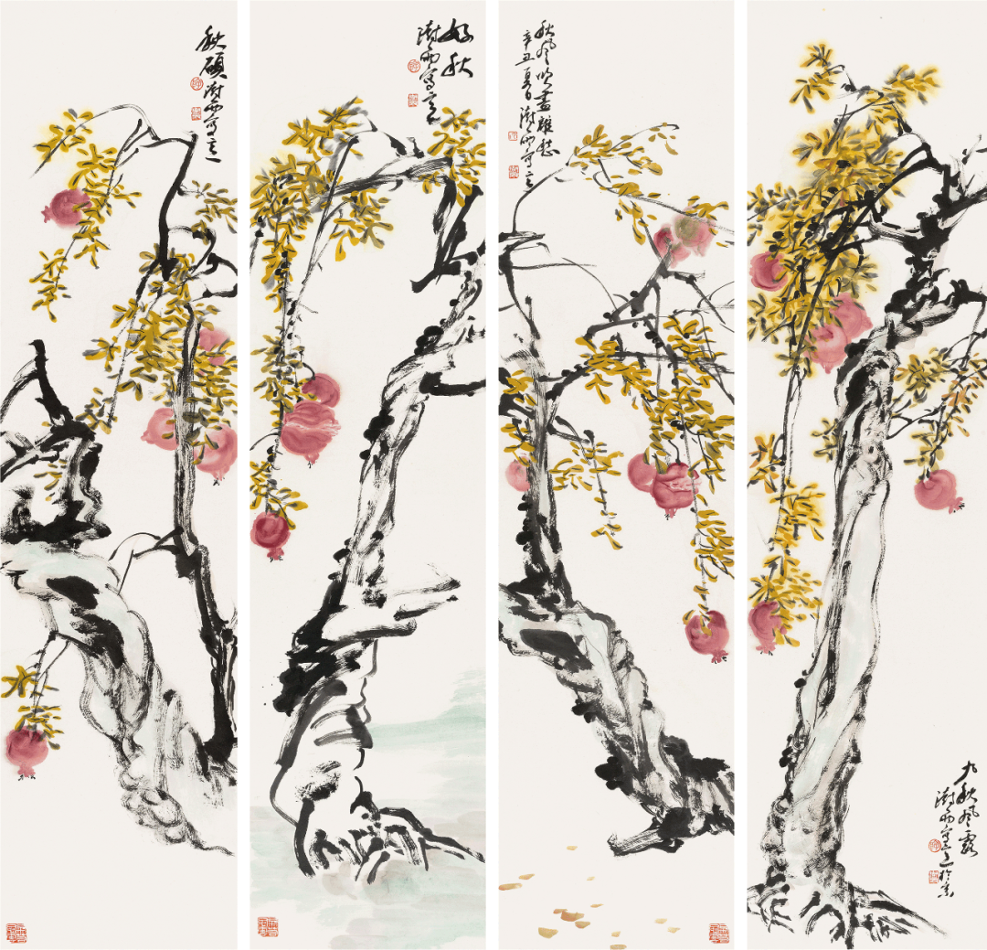 好秋-纸本设色-138×34cm×4-2021