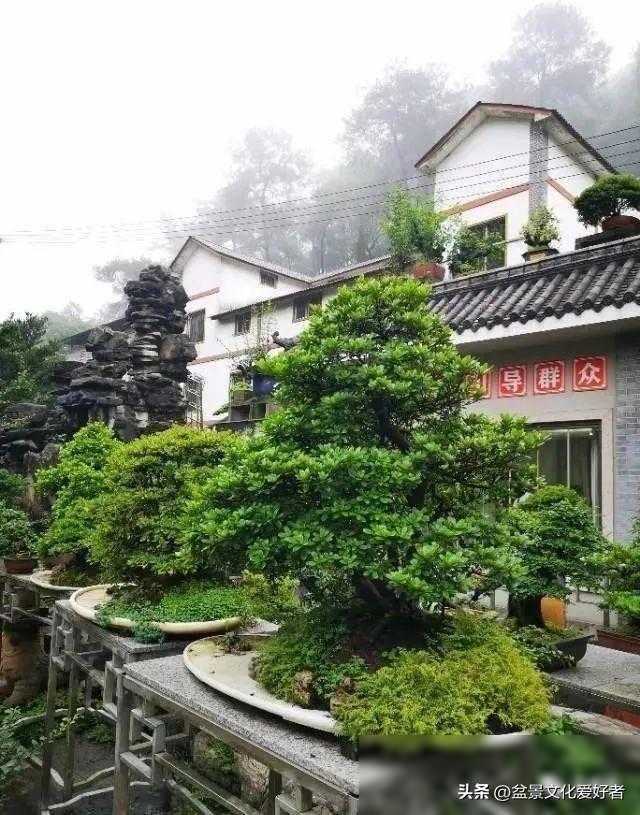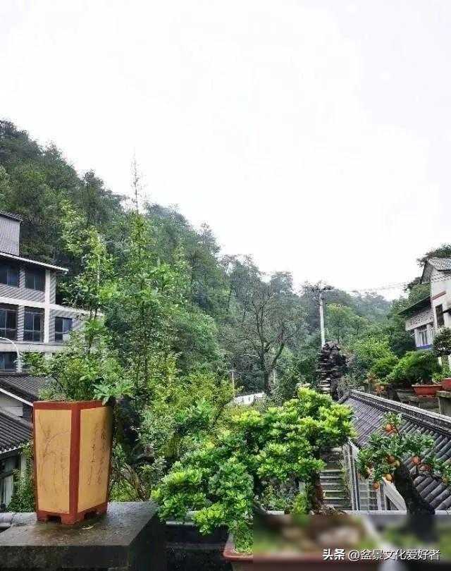 在深秋,雨雾蒙蒙的天气里,南山金鹰岩下的双龙村盆景博物馆里的盆景景观,郁郁葱葱,透露着秋日的芬芳。一盆盆金弹子含苞待放,挂满了金秋的果实。
