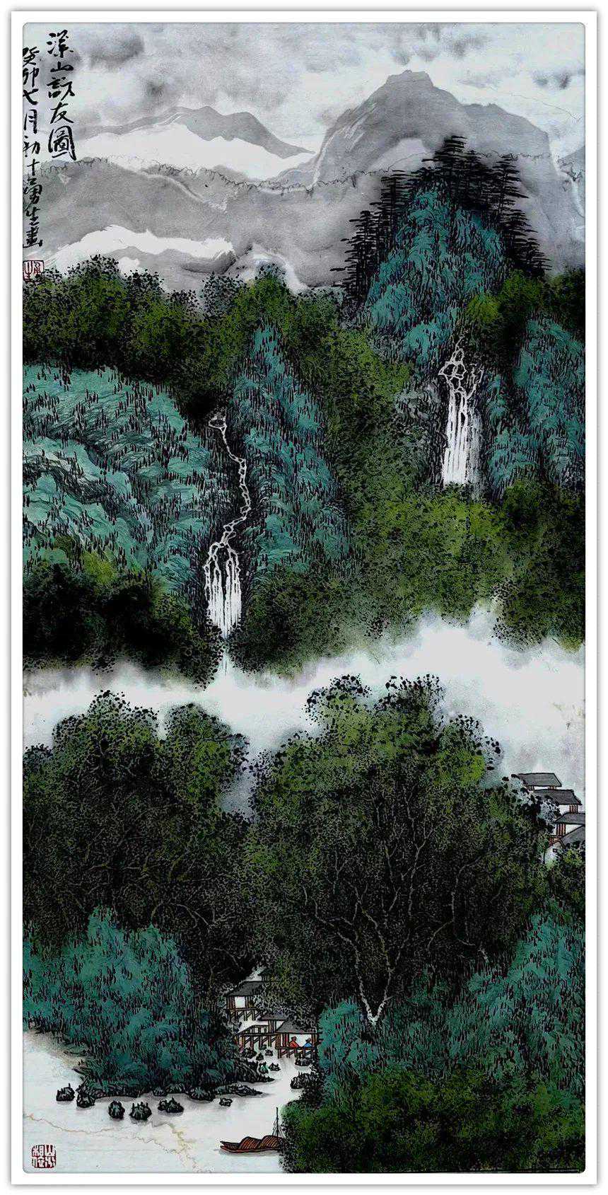 色彩运用更是蒋勇生的巧夺天工之处。墨色、青绿等色调在他的笔下流转,营造出一种清新脱俗的氛围,令人陶醉其中,流连忘返。蒋勇生的山水画作品,不仅是自然的写照,更是生活的颂歌。他的每一幅作品都充满生机与活力,让人仿佛置身于山水之间,感受大自然的美好与神秘。