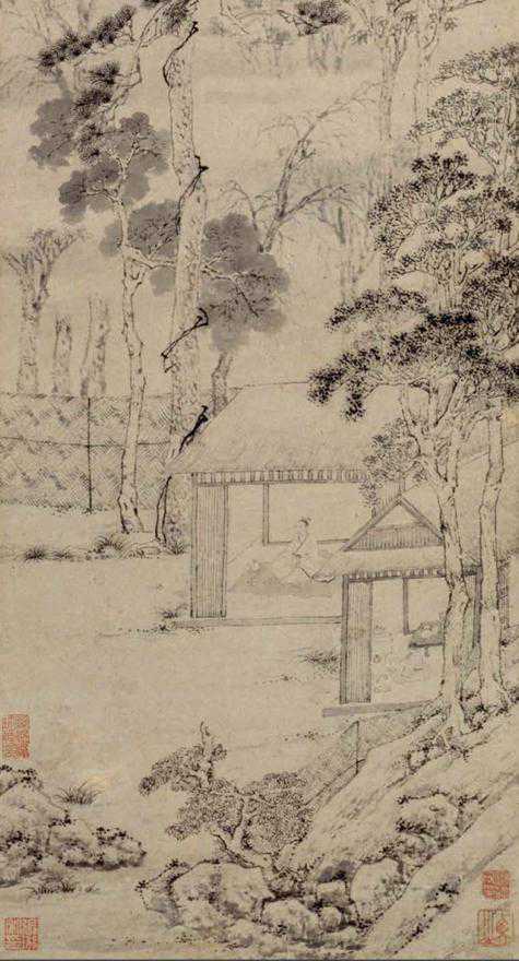画中正是唐代茶人卢仝在庭院中给水煮茶的情景,虽然所绘为唐代茶事。但从画中树墩上的煮茶风炉与单柄壶来看,表现的却非唐代煎茶法。而是元明流行的煮茶法。煮好的浓茶可用作茶卤,饮用时将茶卤和开水混合,调成浓淡适宜的茶汤。