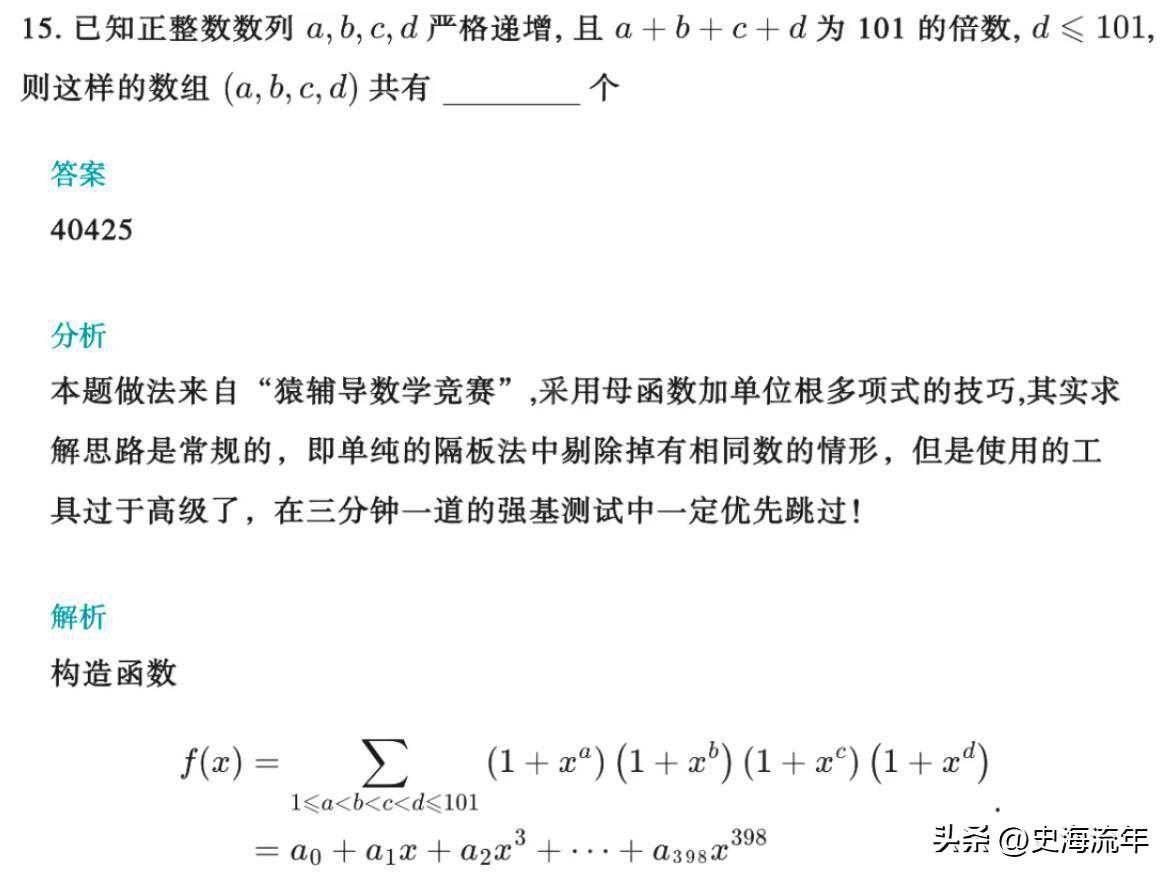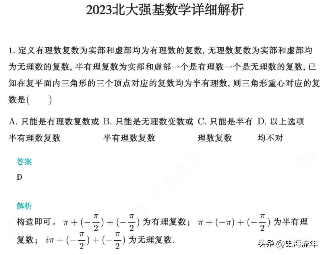 北京大学“强基计划”校测数学试题,看起来只有20个选择题,但是运算量非常大,不仅要有扎实的学科知识,还要有敏锐的学科嗅觉,做题速度要快,运算要准确。