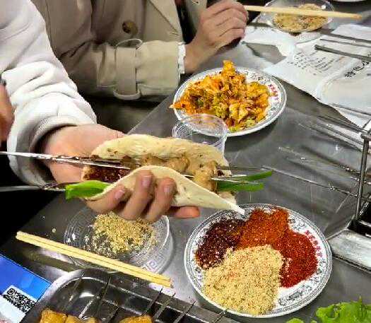 同样都是烧烤,“淄博烧烤”摆脱了签子的束缚,开发出“火炉、小饼加蘸料”的灵魂吃法,以及“一桌、一炉、一卷饼”的仪式感。一说烧烤配卷饼的吃法,源于淄博烧烤口味偏咸,于是歪打正着,吃出讲究,自成一格。总之,独特的吃法让“淄博烧烤”有了“人传人”的效应,很多人抱着一尝究竟的心态奔赴淄博。