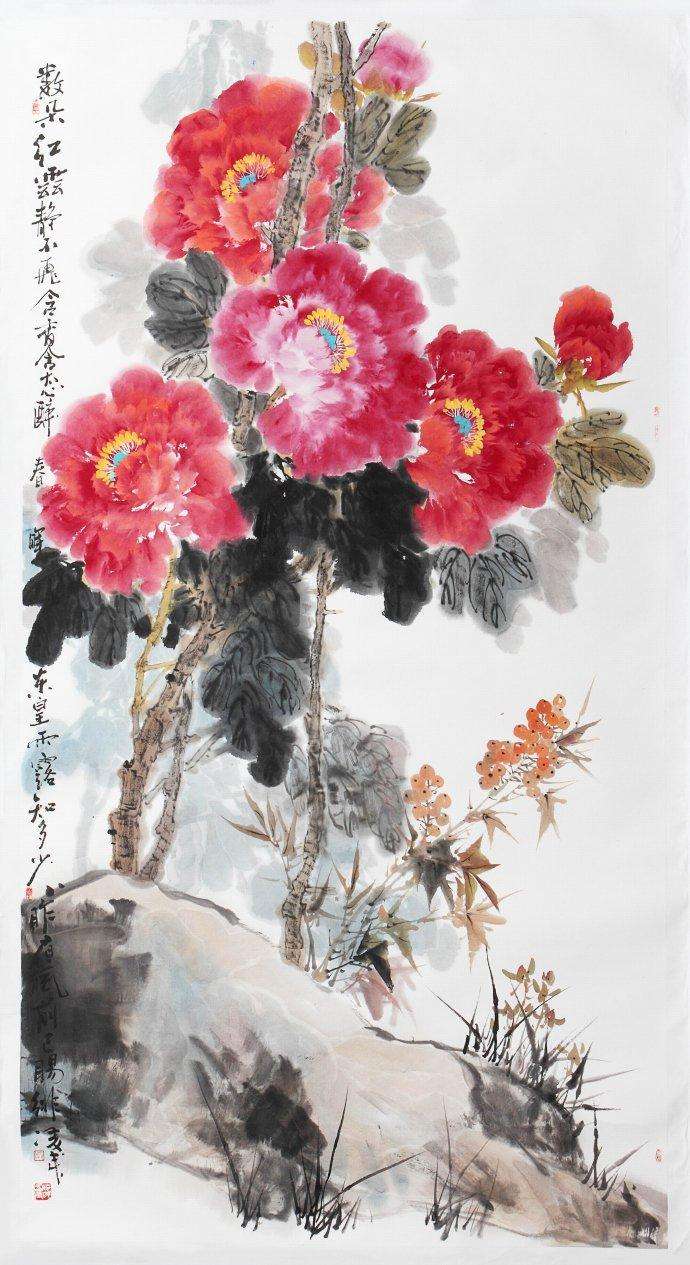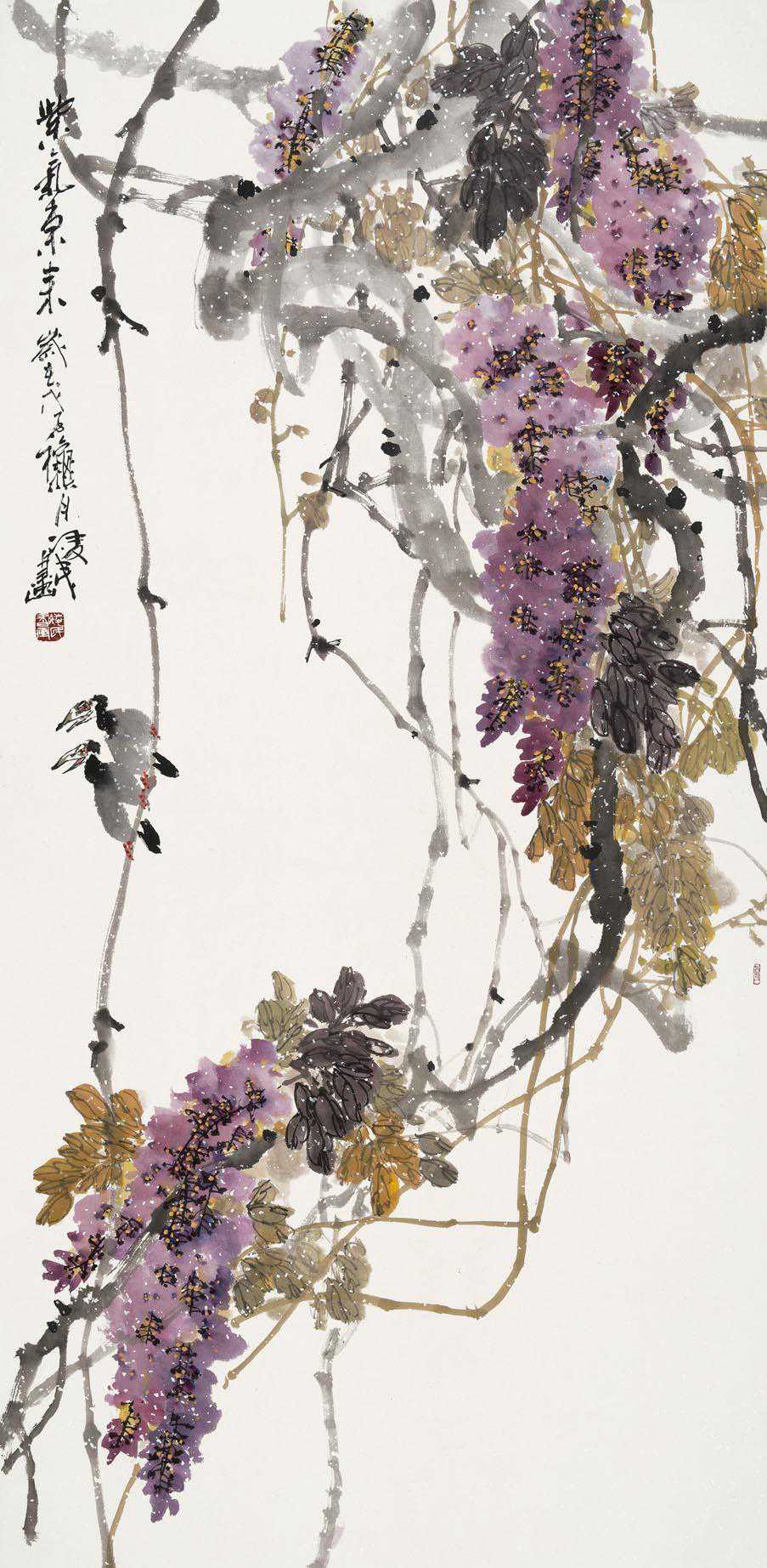 故其笔下花鸟绚丽多姿、争奇斗艳,而笔墨之苍润,笔中笔,墨中墨,绵中生刚,魅力无穷。