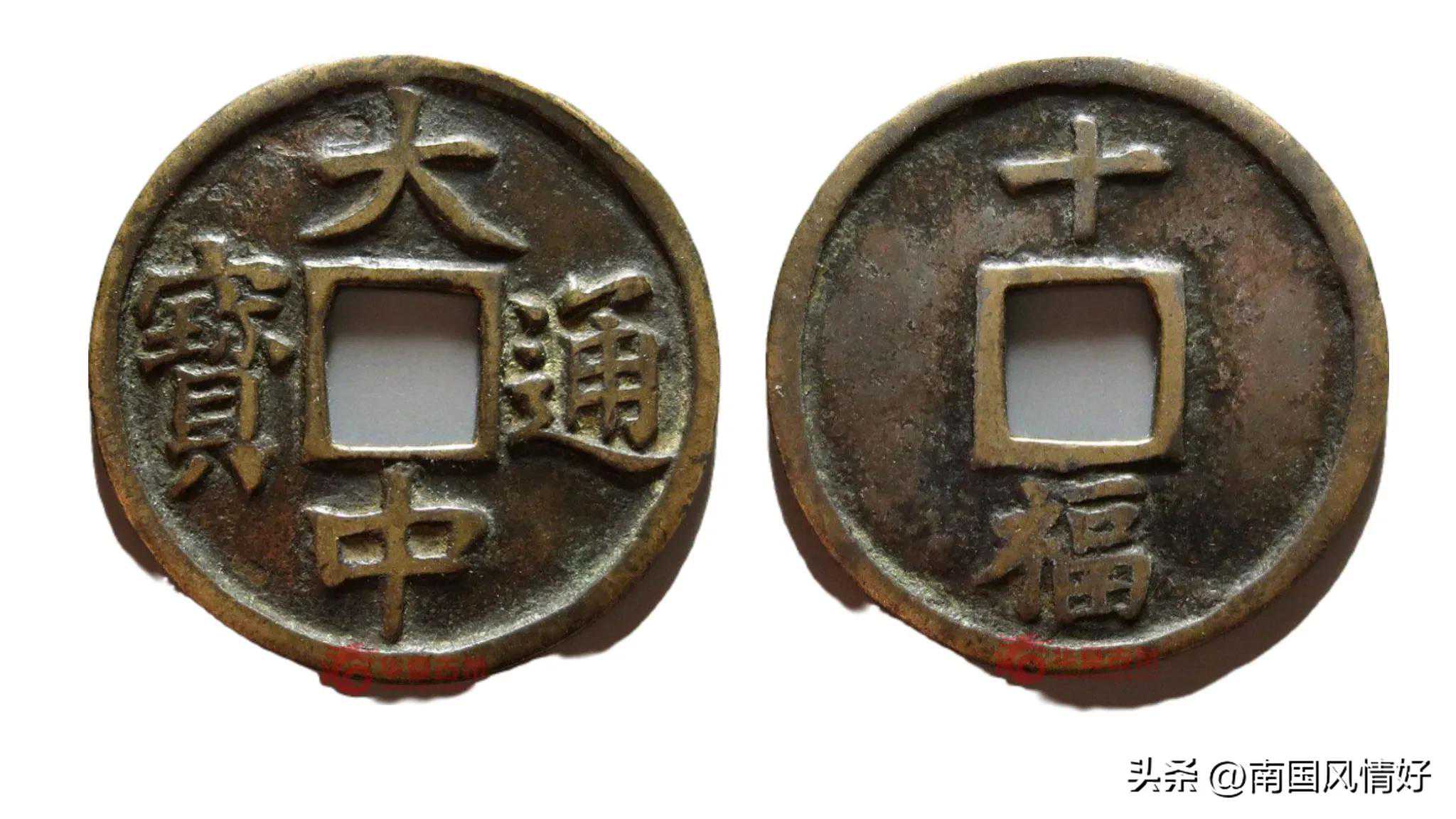 第三枚,大中通宝背下福,2018年成交价13000元。