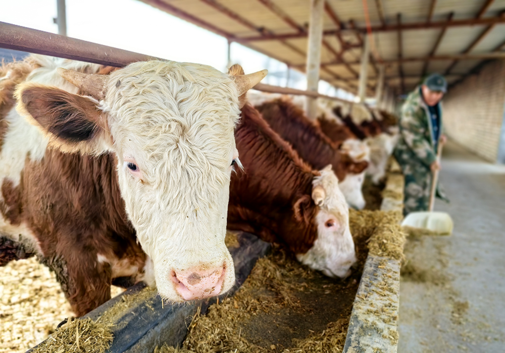 3月5日,在菏泽市牡丹区黄堽镇马堂村的肉牛养殖场里,养殖户庞承建正在喂牛,看着肉牛一天天变得膘肥体壮,他心中充满了喜悦。