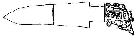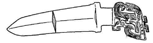 安阳刘家庄M15:5号戈,片状戈援,长32.1厘米(殷墟四期),该墓面积不大,约3.92平方米,由于该墓被盗无法从随葬器物判断墓主身份,但从有一殉人,有棺有椁的情况看,墓主有可能为低级贵族或较富裕的平民。