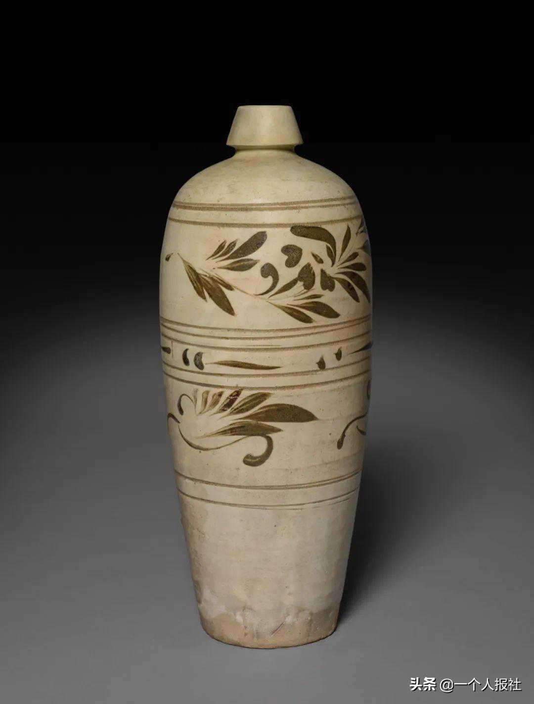 南宋吉州窑褐彩绘波涛纹梅瓶