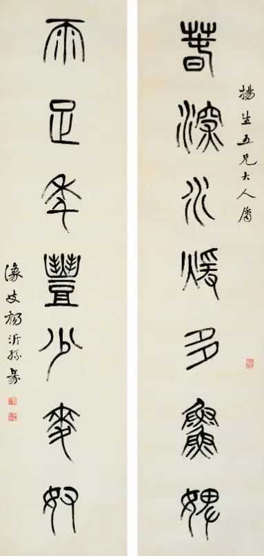 格,使清季书法,放一异彩。隶书尤放纵飘逸,自成高古博大气象。其时与邓石如齐名。