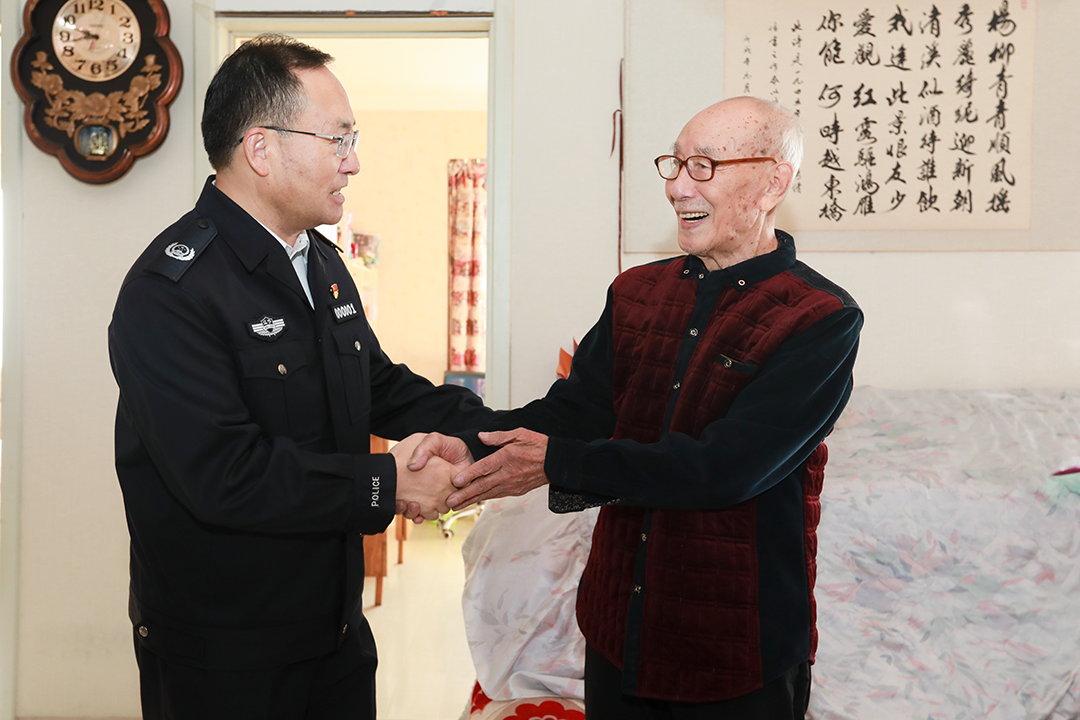 郑艺先后来到离退休老同志张百朋、赵士君、于洪绪家中,与老同志促膝交谈、嘘寒问暖,详细了解老同志及家属的身体和生活状况,衷心感谢老同志长期以来为全省安全稳定和辽宁公安事业作出的辛勤努力和杰出贡献,叮嘱他们要保重身体,希望老同志们充分发挥政治优势、经验优势、威望优势,为辽宁公安工作多提诤言、多献良策,并祝愿他们节日快乐、阖家幸福,健康长寿、安享晚年。郑艺表示,厅党委将认真贯彻落实习近平总书记对老干部工作的重要指示精神,进一步在政治上尊重老干部、思想上关心老干部、生活上照顾老干部,用心、用情、用力做好服务保障工作,让老干部老有所依、老有所享、老有所乐。